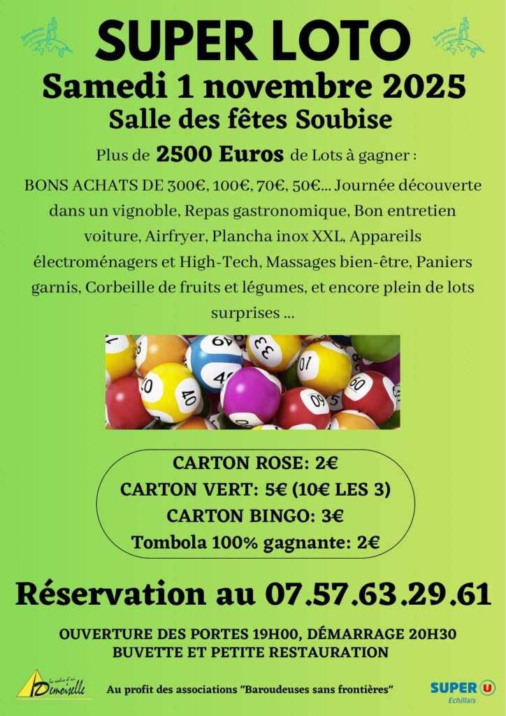 Plusieurs fois par an, nous organisons des lotos dans les salles de Soubise et Rochefort.